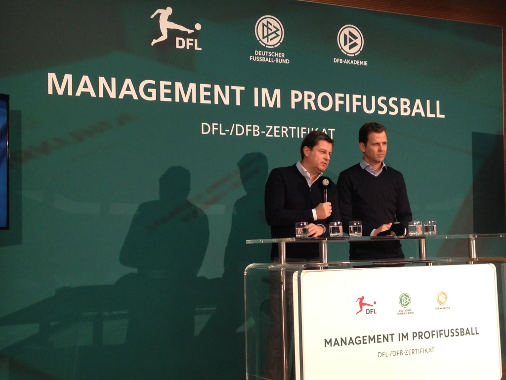 In einer gemeinsamen Pressekonferenz stellten die DFL (Deutsche Fußball-Liga), der DFB und die DFB-Akademie einen neuen Lehrgang für Fußball-Manager vor.